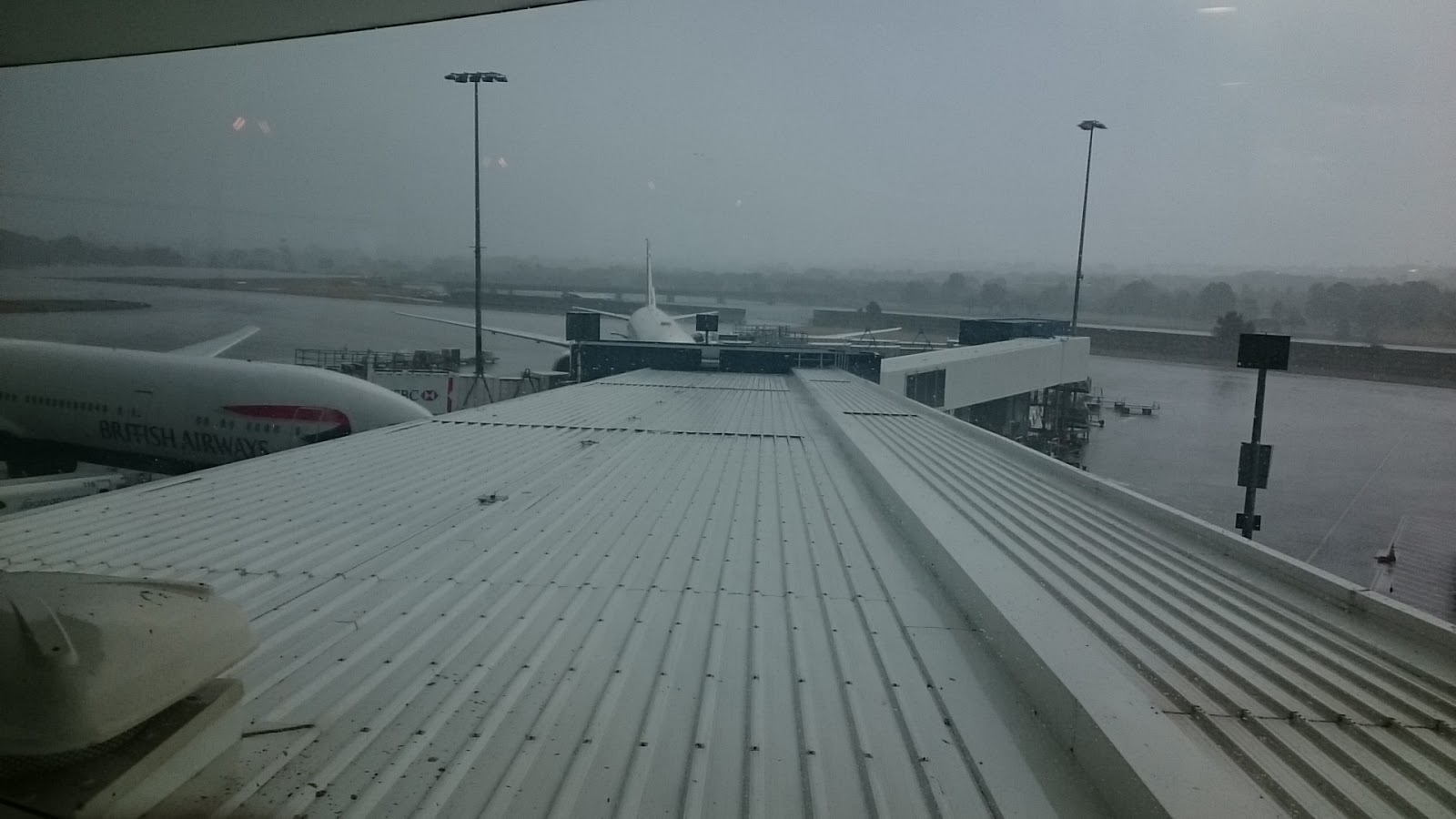 飛行機に乗っても雷雨でなかなか出発できず、30分単位で延期・延期で、結局3時間後にやっと飛